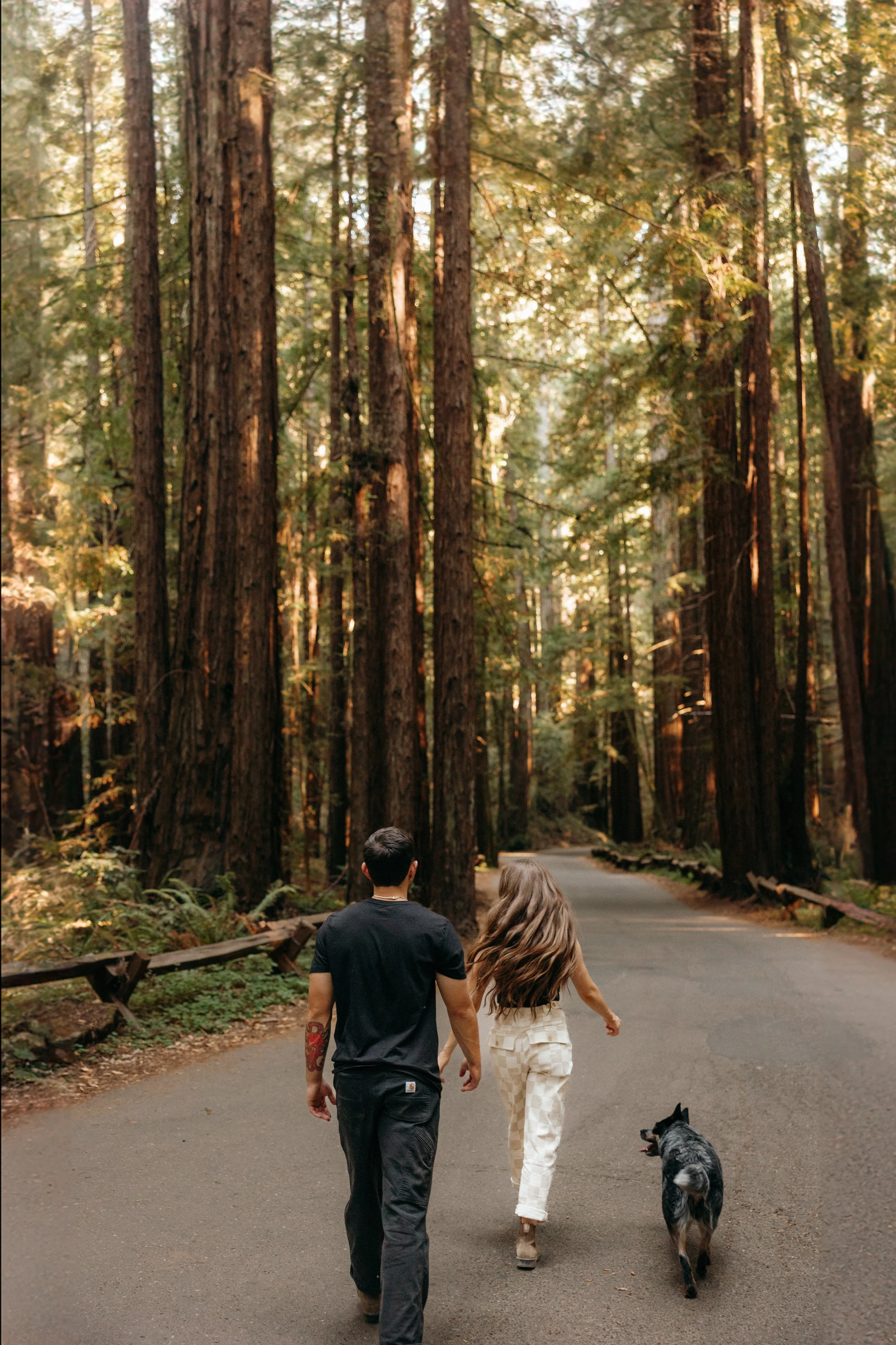 We started the second day in the redwoods around midday, admiring the majestic trees on the main trails. Cheyenne and Devin brought their pup, Stevie, along so we stuck to the pet-friendly paved areas which were still awesome. The stillness and grandeur of the forest created the perfect backdrop for the final stretch of their engagement session. More tiny humans, big scenery moments made me very happy.
